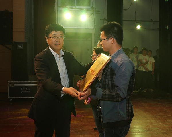 校党政办主任王增国为获得“十佳团支部”称号的集体代表颁奖