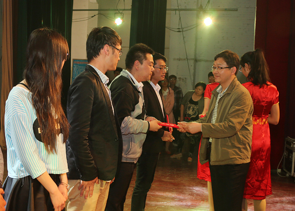 校党政办主任王增国为获得“十佳团支部”称号的集体代表颁奖