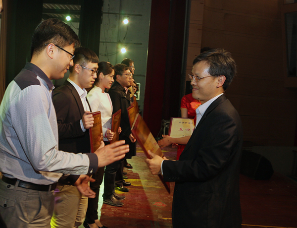 校党委宣传部部长熊志忠为获得“五四青年标兵”称号的个人颁奖