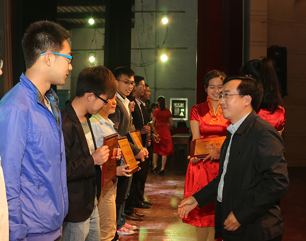 研究生院副院长、校党委研究生工作部部长张利先为获得“团支部工作创新奖”的集体代表颁奖