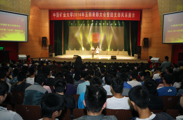 4月30日下午,中国矿业大学2014年五四表彰大会暨团支部风采展示活动在文昌校区科学馆举行。校党委副书记曹德欣,校党委常委、组织部部长蔡世华,校党政办、党委宣传部、校团委、研究生院、学生工作处、教务部及各学院党委副书记出席了表彰大会。各学院团委书记、受到表彰的先进集体和个人代表与全校1000余名团员青年参加了表彰大会。