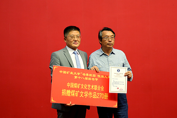 赵建岭副校长代表学校致辞。他高度赞扬了全国各地的煤矿作家捐赠图书的义举,充分肯定了这些优秀的煤矿文学作品所具有的研究价值和珍藏价值,指出图书馆将启动建立煤矿文史数字图书库,努力建成煤矿工业文化传承和科学研究为一体、独具特色的高校图书馆藏,希望青年学生继承和弘扬矿大精神,勤奋读书,不断提升人文素养,为祖国资源、能源建设贡献自己的力量。