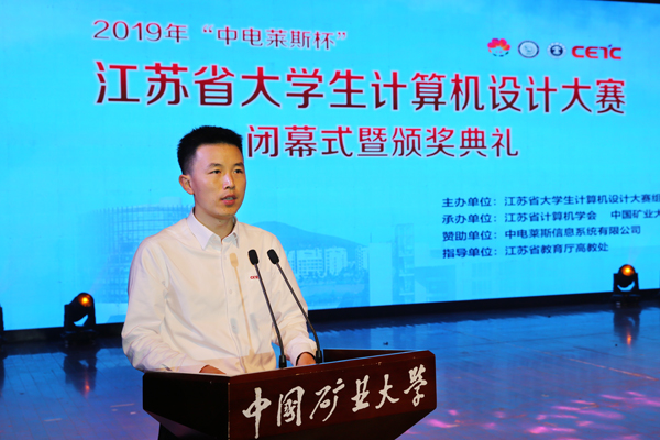 19日上午举行了颁奖典礼。江苏省教育厅高教处处长邵进,中国矿业大学副校长曹德欣,江苏省计算机学会副秘书长金莹,中电莱斯信息系统有限公司纪委书记王继昌,中国矿业大学教务部、计算机学院负责人,本届大赛组委会、执委会主要成员,各参赛高校领队、教练和选手等参加了颁奖典礼。