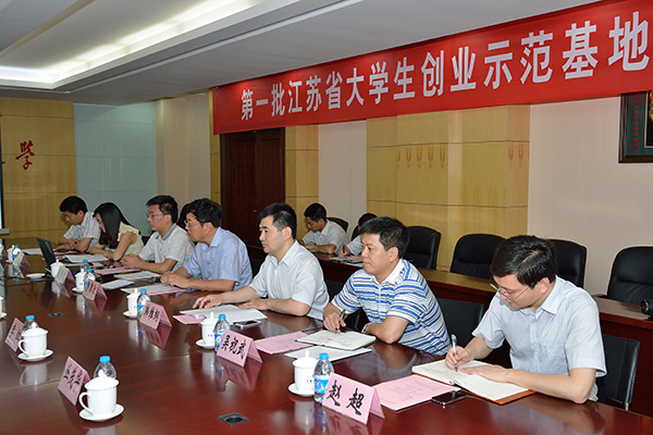 6月18日上午,由南通大学党委副书记、副校长江应中任组长的江苏省大学生创业示范基地建设工作检查组一行五人来我校,对我校大学生创业园获批省级大学生创业示范基地以来的建设情况进行检查。