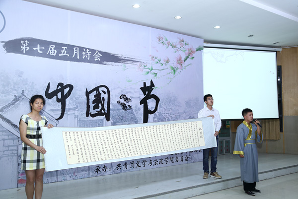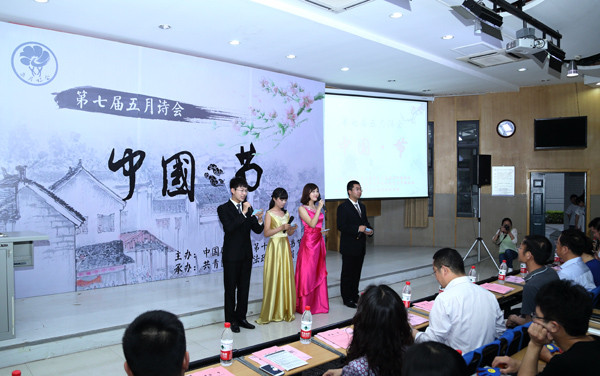 5月25日晚,由校第十三届读书节组委会、校大学生文化艺术节组委会主办,文法学院团委、诵读协会承办的中国矿业大学“中国•节”第七届五月诗会在镜湖大讲堂举行。
