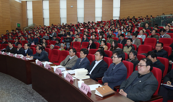 校党委书记邹放鸣主持报告会,在校校领导、校党委常委、校长助理,离退休同志代表,处级以上干部(含调研员),机关科级干部及学生辅导员参加了报告会。