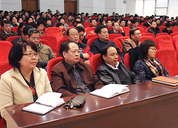 校党委常委、组织部部长蔡世华,校长助理王铁群出席会议,校党政机关科级及以上干部、其他工作人员代表,各学院党委书记、负责行政工作的副院长及科级干部代表,直附属单位科级及以上干部、其他工作人员代表参加会议。