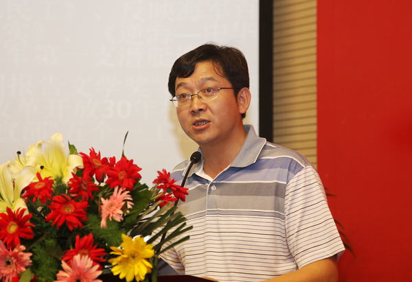 开幕式后,海军政治部创作室主任、国家一级作家黄传会少将做了题为《作家的历史使命与时代责任》的专题报告。他的报告内容主要包括三个方面:他的创作经历、作家的良知、普通人的尊严。作为一名写报告文学的作家,黄将军做过许多深入采访。他用一支笔,记录了希望工程的资助历程,记录了中国山村教师的辛酸生活,记录了农民工及其子女在城市的尴尬处境,也记录了中国海军的飒爽英姿。黄将军认为,良知是一个作家的基本底线。另外,作家还需要有所担当,要与人民群众同呼吸、共命运;至于报告文学,则需要反映大家的心声。黄将军报道了许多底层人民,引起了巨大的社会反响,从而帮助他们获得了很多资助,但是他认为,与其说他挽救了许多人的性命,不如说他们一直在激励着他前行。在采访农民工时,黄将军深深的感受到:他们的尊严受到侵犯,他们始终不被城市所接受。因此他强调自己是为了普通人的尊严而写作,为了那些尊严被践踏的人而发出呼唤。黄将军还指出,书籍能够奠定人们的精神支柱,因此希望同学们珍惜现在的大学生活,不要错过阅读的黄金季节,另外还要多参加社会实践。