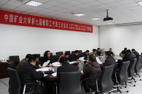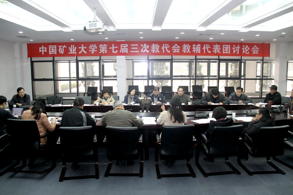 2月23日,中国矿业大学七届三次教代会的20个代表团分别召开会议,围绕《校长工作报告》、《2012年学校工作要点》、《中国矿业大学学术委员会章程(草案)》进行分组讨论,审议《2012年财务预算方案》、《中国矿业大学教职工代表大会实施办法》和《第七届二次教代会以来提案办理工作报告》并征集代表提案。校领导邹放鸣、葛世荣、宋学锋、王建平,校党委常委、校党委组织部部长蔡世华,校长助理、校工会主席刘圣汉分别深入到一些代表团参加讨论,多方听取代表们的意见。