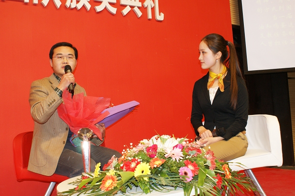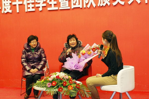 在颁奖典礼现场,获得“2010年度十佳学生暨团队”称号的个人和团队代表还通过现场访谈的形式,与在场的师生们分享了自己奋斗的艰辛、坚持的痛苦和成功的喜悦,以自己青春的激情、青春的梦想和青春的力量与师生们共勉、共进。
