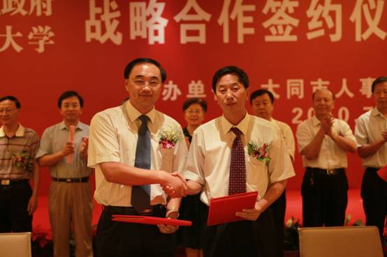仪式上,校长葛世荣发表了热情洋溢的讲话。他说,中国矿大与大同市特别是同煤集团的合作由来已久。作为能源科研教育的领先者,学校在做好人才培养的同时,一直积极服务地方经济发展。大同是国家重要的能源基地,也是历史文化名城,为国家能源发展作出了巨大贡献。中国矿大将通过合作,融入到大同的经济发展中去,培养更多的人才,转化科技成果,为大同“科教兴市”助力,为实现大同城市转型作出积极贡献。葛校长表示,中国矿大十分重视与大同的合作,学校将尽全力推进各个合作项目,让矿大的学生、科研成果在大同这片热土上释放光芒。 随后,大同市市长耿彦波致辞。他说,中国矿大是全国一流的能源科技大学,煤炭、机械、材料、工业设计、生态环境等学科具有鲜明的特色和明显的科研优势。大同市与中国矿大结为战略同盟,对城市转型与能源发展有着重要的意义。大同是著名的“煤都”,随着煤炭工业走向规模化、集约化、细致化,科技的支持显得尤为重要。大同市与中国矿大的合作前景十分广阔,耿彦波市长希望学校为大同市不断输送人才、技术和新的信息,为大同市加快城市转型,实现“三名一强”的目标提供更多更好的人才和智力支撑。 据悉,学校本着“立足当前、面向长远、资源共享、互惠互利、真诚合作、共同发展”的原则,与大同市建立校地长期合作关系,为大同市经济社会发展提供重要的人才与科技支撑,将在人才引进、项目研究、人员培训、学生实习实践、干部交流等方面开展合作交流。 座谈会现场