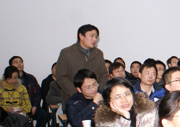 朱旺喜处长对比了中国与其他国家的矿业研究现状,指出我国的矿业研究不容乐观。他说,中国是煤炭大国,与其他国家在矿业研究方面的差距在于实力与创新力。在中国,所谓的创新就是率先模仿,这种“创新方式”相对于世界而言实在是太慢了,企业和社会呼吁真正的创新成果,国家发展需要真正的创新。他说,中国矿业大学作为煤炭行业的领军人应担当此重任,他引用美国矿业大会的两句标语鼓励矿大人,“一切以矿业开始”,“未来仍属于矿业”。最后,朱旺喜处长指出了矿业研究的出路,即依靠行业自己努力;依靠科技进步;依靠踏踏实实的本职工作,摒弃浮躁,端正心态;依靠信心。报告临近尾声,到场人员积极提问,朱旺喜处长一一给予解答。