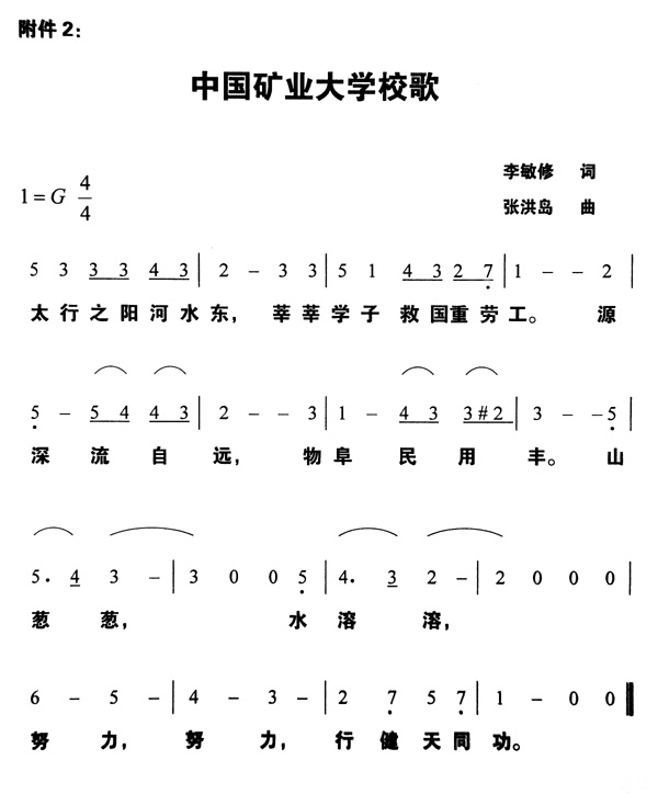 此次发布的校歌为1934年秋教育家李敏修先生作词、张洪岛先生作曲的《焦作工学院校歌》。同时,1999年由集体作词、臧云飞作曲的《中国矿业大学校歌》更名为《矿大之歌》。