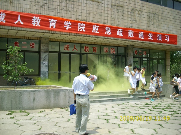 6月19日、6月23日、7月1日,我校文昌校区教2楼、教3楼,南湖校区党政办公楼,图文信息中心先后举行应急疏散逃生演习。演习由校保卫处策划承办,消防志愿者大队、昌湖物业公司、恒通物业公司协办,应用技术学院、成人教育学院、党政机关、图书馆、现代教育技术中心、档案馆、新闻中心、人事处档案室等单位共一千余人参加了演习活动。