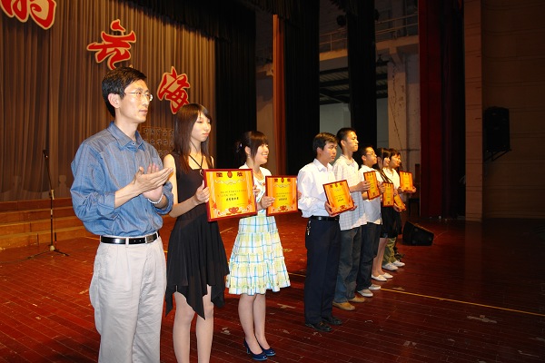 校团委副书记王传棨为获得优秀组织奖的学院颁奖