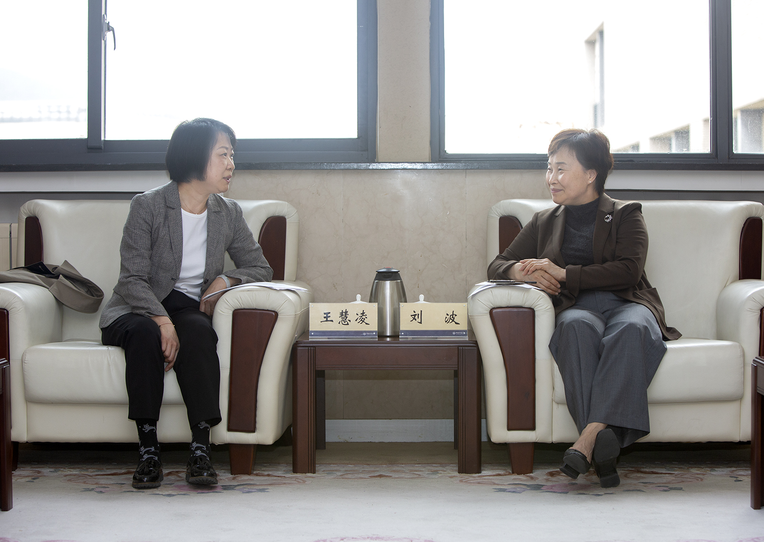 刘波代表学校对王慧凌、赵存良一行表示欢迎,向中国煤炭教育协会长期以来的支持表示感谢。她指出,在新时代能源行业积极响应国家战略、迈向高质量发展的进程中,中国矿业大学作为煤炭高等教育领军院校,将充分发挥自身平台优势和科技创新引领作用,紧密围绕国家能源战略需求,与协会及兄弟高校深化合作,共同推进教育链、人才链、产业链、创新链深度融合,助力煤炭行业转型升级,为行业高质量发展作出更大贡献。她强调,作为中国煤炭教育协会高等教育分会理事长单位,中国矿业大学将全力支持做好协会各项工作,积极打造高水平交流平台,讲好中国能源强国、报国故事,推动协会成员单位内涵式发展,携手谱写煤炭高等教育新篇章。