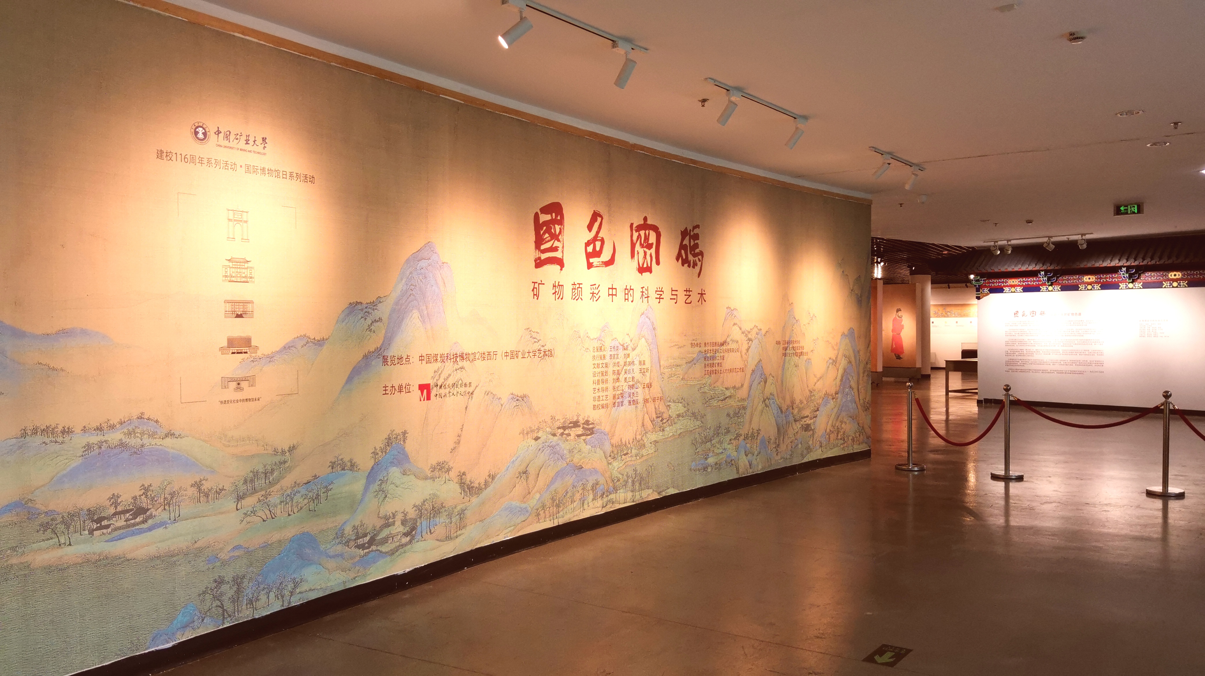 该展览以“宝藏矿大,千彩矿物,道器相通,技艺传承”为策布展起点,整合校内外科技、文化、非遗等展教资源,通过“科学+艺术”的方式,以原生彩晶矿物标本及其化学成份、晶型结构、呈色特征等科学研究成果、艺术画作及颜料制作工艺(非遗)展示,讲述“矿物颜彩中的科学故事”;以中国传统相关色彩的绘画名作、壁画、器物、图谱等艺术作品为载体,多角度解读“矿物颜彩艺术与文化”。展陈设计融合矿物学、艺术学等多学科视角,展现“一色一世界”的文化内涵,旨在以矿物颜彩为支点,撬动文化传承、科学普及与美育创新协同发展,引领观众领略国色之韵、匠心之魂、文化之美。