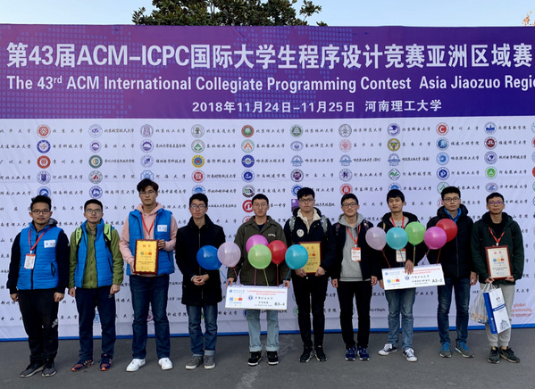 11月24-25日,2018年ACM-ICPC亚洲区域赛(焦作站)在河南理工大学举行。本次比赛吸引了来自清华大学、北京大学、中山大学、北京交通大学、中国矿业大学等高校在内的298支队伍参赛。经过三天的激烈角逐,中国矿业大学获得一金、一银、一铜的优异成绩,首次在该赛事取得金牌,实现了历史性突破。