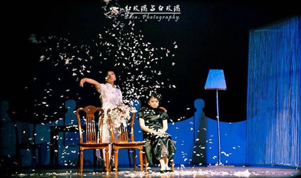 观众在看话剧时,可能没太注意过舞台上的道具,但那些精细鲜亮的道具,据说是由剧社的成员们自己亲手制作出来的。谈到这一点时,陈瑶颇为自豪地告诉我们:“许多道具不好找,并且达不到我们想要的效果,因此我们一般都靠自己动手来解决道具问题。许多大型的结构型道具需要木材和钢材才能搭起来,剧社成员们就骑着三轮车从宣武市场将材料运回学校来,再经过各种制作方式制作成形,所有的道具在排练时也会进行二次审核,一个道具可能也会经过许多次的修改才能最终拿上舞台。在话剧《红玫瑰与白玫瑰》中,那些绚丽的玫瑰花,竟然都是社员们一个一个剪出来的,花费了近两个月的时间,只是为了这一秒的绽放。