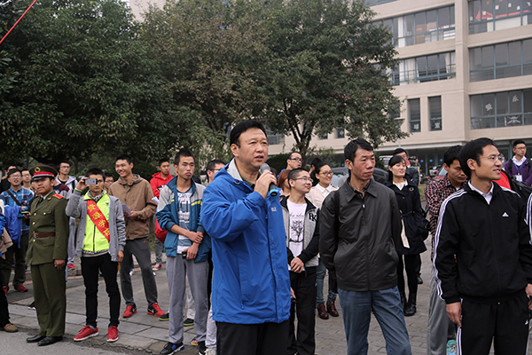体育学院院长王朝军主持半程马拉松赛起跑仪式及颁奖典礼
