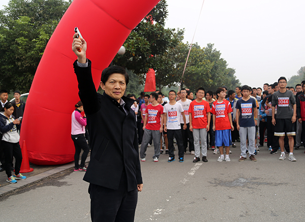校体委主任、副校长宋学锋为迷你马拉松赛鸣枪