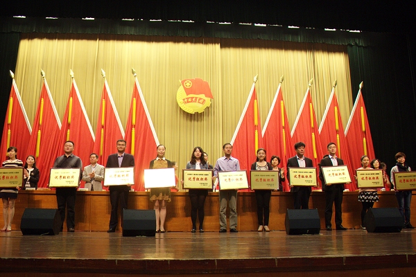 校团委书记李江涛(左六)代表学校领取“优秀组织奖”