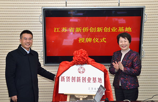 周建农主席和万志军主任共同为“江苏省侨联新侨创新创业基地”牌匾揭幕。