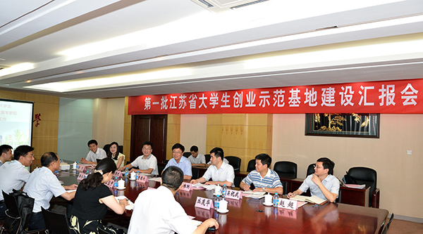 6月18日上午,由南通大学党委副书记、副校长江应中任组长的江苏省大学生创业示范基地建设工作检查组一行五人来我校,对我校大学生创业园获批省级大学生创业示范基地以来的建设情况进行检查。