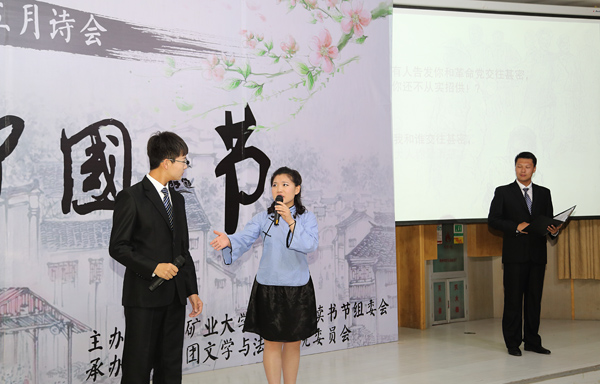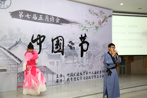 5月25日晚,由校第十三届读书节组委会、校大学生文化艺术节组委会主办,文法学院团委、诵读协会承办的中国矿业大学“中国•节”第七届五月诗会在镜湖大讲堂举行。