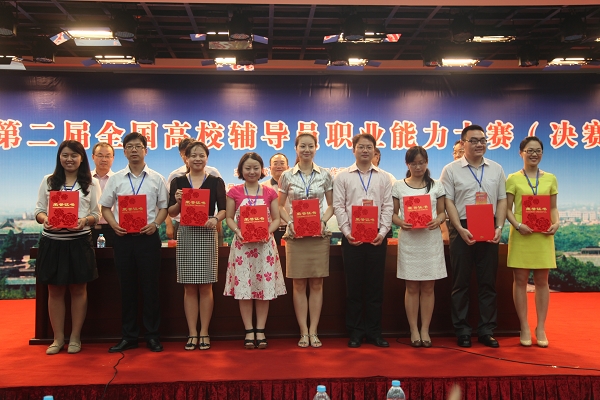第二届全国高校辅导员职业能力大赛由教育部思想政治工作司主办,于5月下旬在武汉大学举行。大赛分为复赛和决赛两个阶段,来自全国31个省(区、市)的96名选手参加复赛。我校辅导员王梦倩经过严格考察选拔,作为江苏省代表队三名选手之一参加了比赛。复赛包括基础知识测试、博文写作、自我展示、主题班会视频四个环节。通过激烈角逐,王梦倩入围18人决赛圈。决赛包括主题演讲、案例分析、谈心谈话三个环节,最终评选出一等奖3名、二等奖6名、三等奖9名、优秀奖78名。王梦倩是江苏省代表队三名选手中唯一进入决赛并获得等次奖的选手。