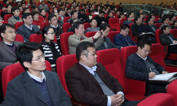 412上午,学校在文昌校区网络大讲堂举行深入学习贯彻党的十八大精神专题辅导报告会。教育部党组成员、国家教育行政学院院长,著名经济学家、教育家顾海良同志受邀为教职员工代表作了“学习贯彻党的十八大精神,推进高等教育科学发展”主题报告