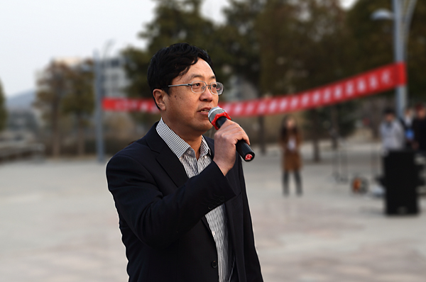 矿业学院工业工程12-2班徐婧、采矿工程12-3班孙中杰、消防11-1班王婷和安全11-3班肖义萌作为学生代表,朗诵了《学习雷锋精神倡议书》,向全体青年学生发出学习雷锋精神的倡议。