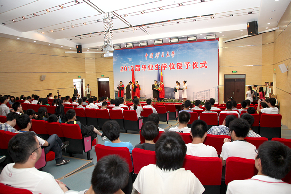 6月19-20日,中国矿业大学2012届毕业生学位授予仪式在南湖校区煤炭科技博物馆南广场、图文信息中心、矿业科学中心大厅分别举行,学校校领导和校学术委员会领导亲自为全校获得学位的6600多名本科生和1900多名研究生一一拨穗正冠、颁发学位证书。