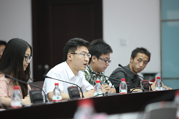 在现场交流互动环节,毕业生代表们踊跃发言,现场气氛十分热烈。他们就自己所关注的问题,如教学课程设置、毕业设计答辩、体育场馆规划、兼职辅导员的配备与管理等,与在座领导进行了深入的沟通交流,并提出了很好的建设性意见,希望能为母校今后更好的发展作出贡献。