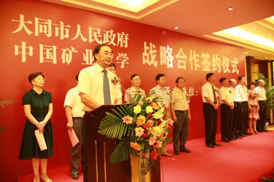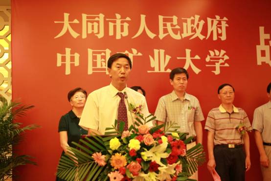 随后,大同市市长耿彦波致辞。他说,中国矿大是全国一流的能源科技大学,煤炭、机械、材料、工业设计、生态环境等学科具有鲜明的特色和明显的科研优势。大同市与中国矿大结为战略同盟,对城市转型与能源发展有着重要的意义。大同是著名的煤都,随着煤炭工业走向规模化、集约化、细致化,科技的支持显得尤为重要。大同市与中国矿大的合作前景十分广阔,耿彦波市长希望学校为大同市不断输送人才、技术和新的信息,为大同市加快城市转型,实现三名一强的目标提供更多更好的人才和智力支撑。