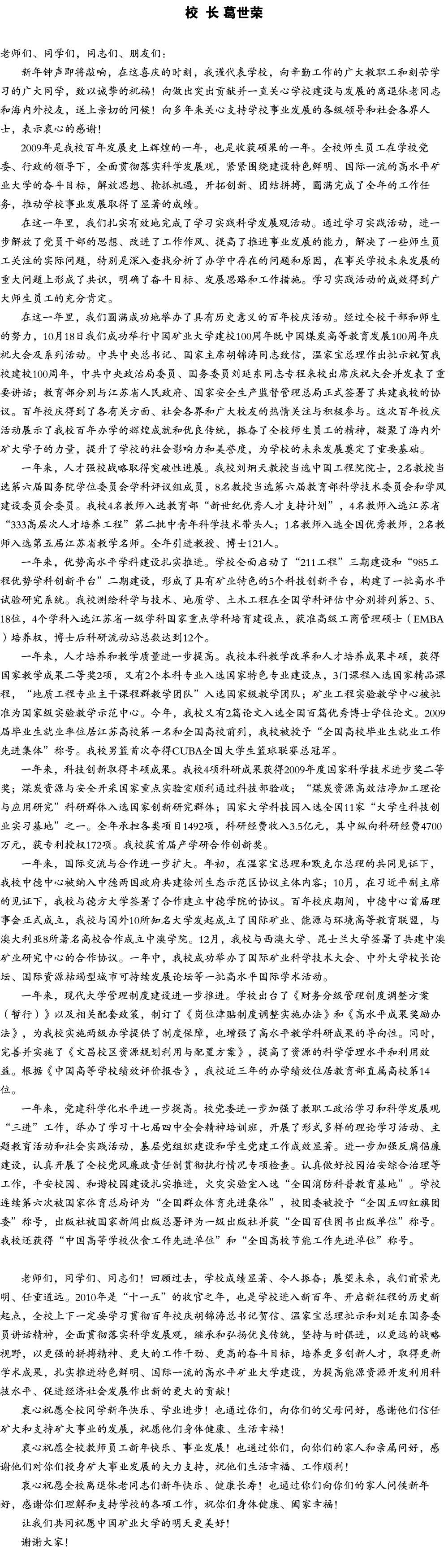 附:2010年新年献辞(音频)